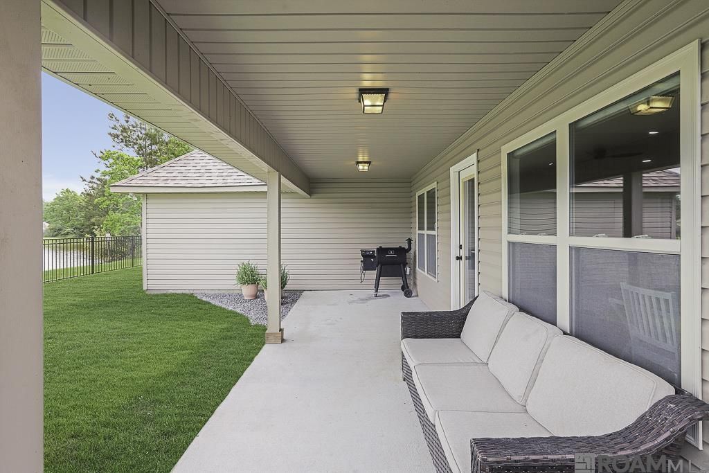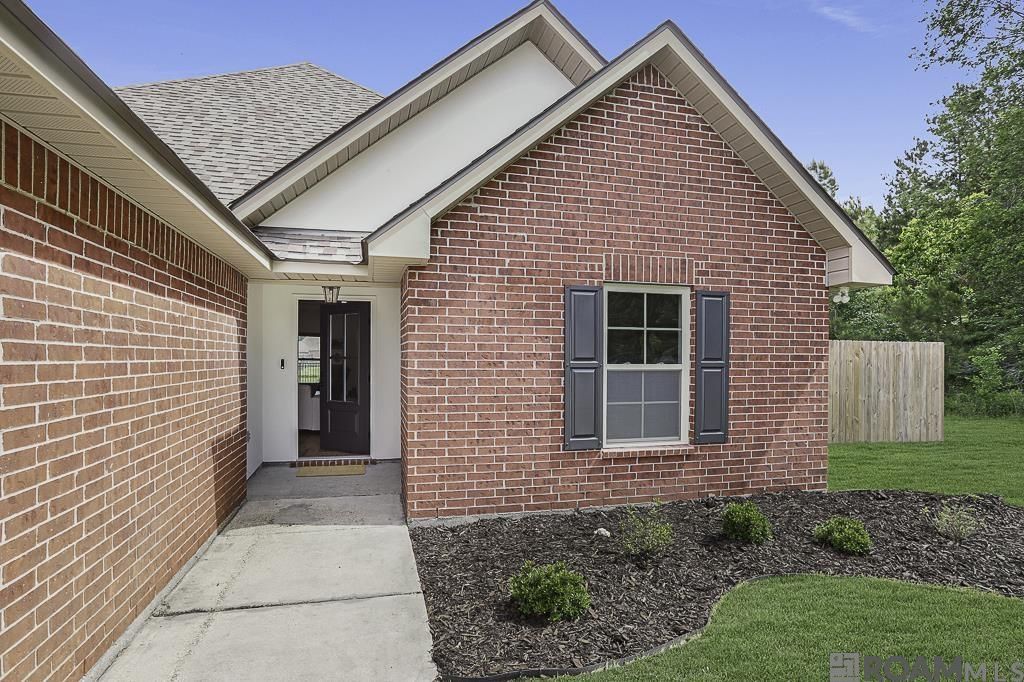 Precious home perfectly positioned at the end of a quiet dead-end street! This home offers extra privacy with only one neighboring property & stunning lake views. Inside, you'll find a cohesive, clean look with new luxury vinyl plank flooring installed in 2024 and a new roof (2024). The open floor plan features tall ceilings and a spacious living room with a fireplace and a wall of windows overlooking the water. The kitchen features granite countertops, stainless steel appliances, and a breakfast bar with bar stool seating. A dining area sits just off the kitchen. The primary bedroom offers a relaxing retreat with a tray ceiling & an en suite that includes a double vanity, granite countertops, a soaker tub, separate shower, and two walk-in closets. Additional updates include modern light fixtures (2024), adding a fresh, updated feel throughout. Located in the highly sought-after Juban Parc subdivision, residents enjoy access to a community pool, park, and playground, perfect for outdoor fun. Conveniently located near shopping, dining, and schools, this home combines peaceful lakefront living with everyday convenience. This home has never flooded and does not require flood insurance.