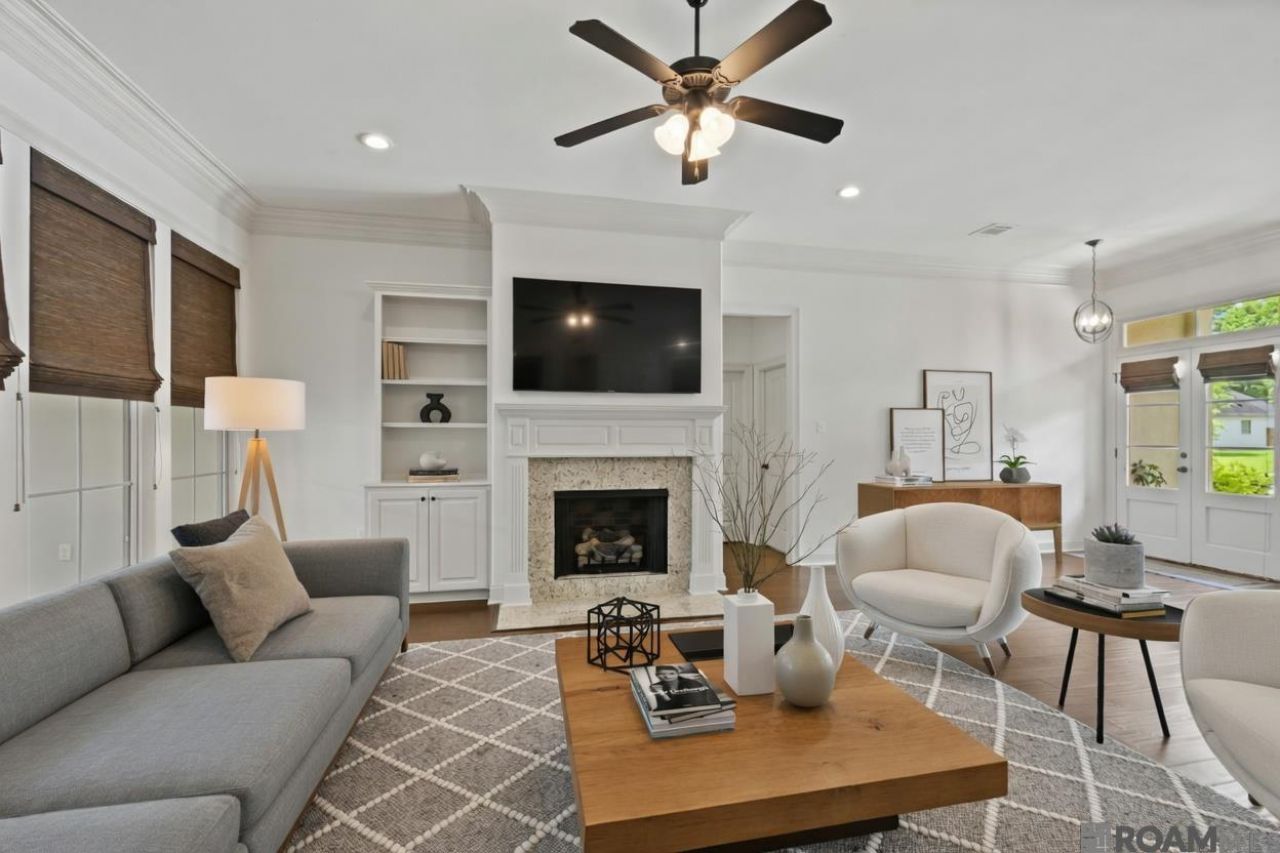 A darling home in the highly desired Lakes at Jamestown, a vibrant and bustling community. The new I-10/12 interstate is ideally located at Pecue Lane, giving you quick access wherever you're headed. This is the home you've been waiting for! 4 bedroom, 2 bath, plus a large bonus room that can be used for a kids' room, work-out, hobby, reading room, or whatever your lifestyle demands. A warm, inviting open floor plan with plenty of natural light creates the perfect layout for entertaining or just hanging out with friends and family. Fans and light switches feature dimmer switches designed to add to the coziness and comfort of this home. Right off the kitchen, there's a convenient office nook. The primary suite is set at the back of the property, offering a lovely sense of privacy. It features a generously sized walk-in closet for lots of storage. This ensuite bath features a separate shower, a large garden tub, and a two-sink vanity. The 3 additional bedrooms are located on the opposite side of the home and are serviced by a full bath. There is a nicely sized, fenced-in backyard. The community offers a lovely pool, fitness center, and a walking trail alongside the neighborhood lake. Call for a showing today.